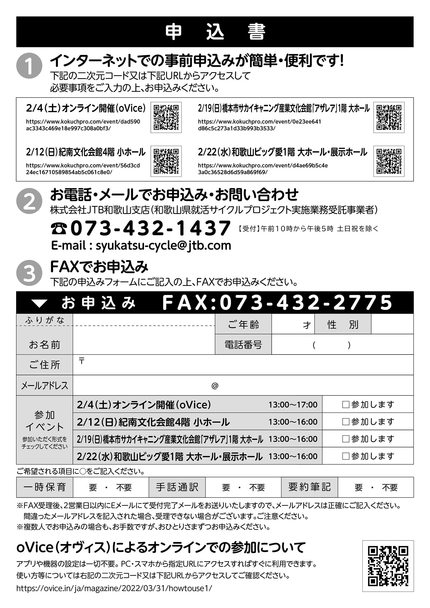 2017(平成29)年度から、和歌山県独自の就活サイクルプロジェクト(※)に取り組んでおり、本プロジェクトの一環として、今年も、一般求職者向けの合同企業説明会を県内3会場+オンラインで開催します!