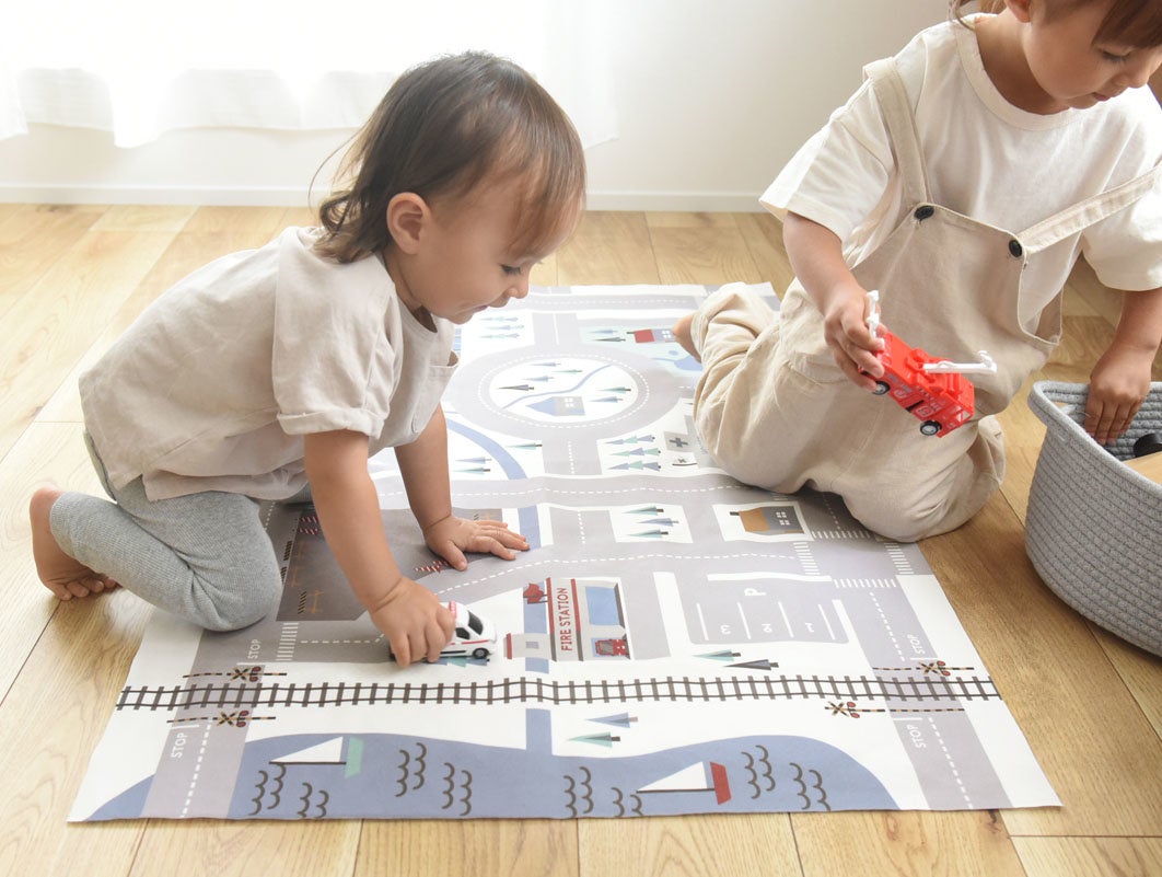 布製だからサッと敷けて、片付けも畳むだけ。ママに嬉しいインテリア映えカラーと、キッズのためのしっかり遊べるデザイン。そんな、親子ともに理想的な「kukka ja puu ロードマップ」、8/8発売。