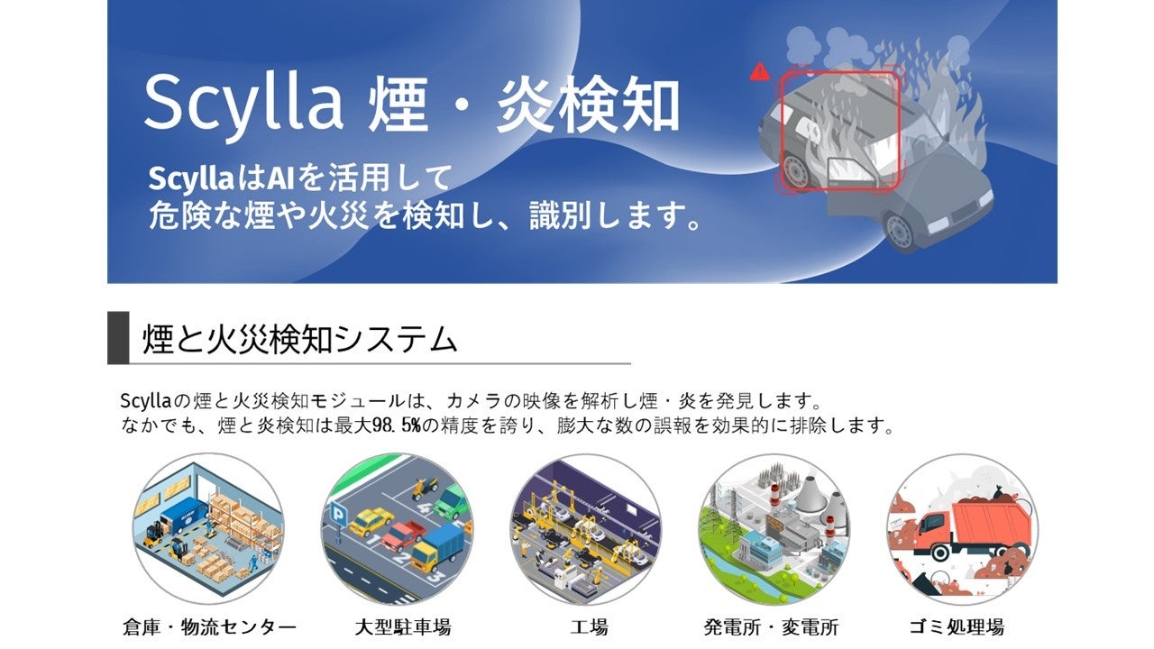 煙や火災を検知するAI画像解析ソリューションSCYLLAとVMS(Video Management Software)を出展