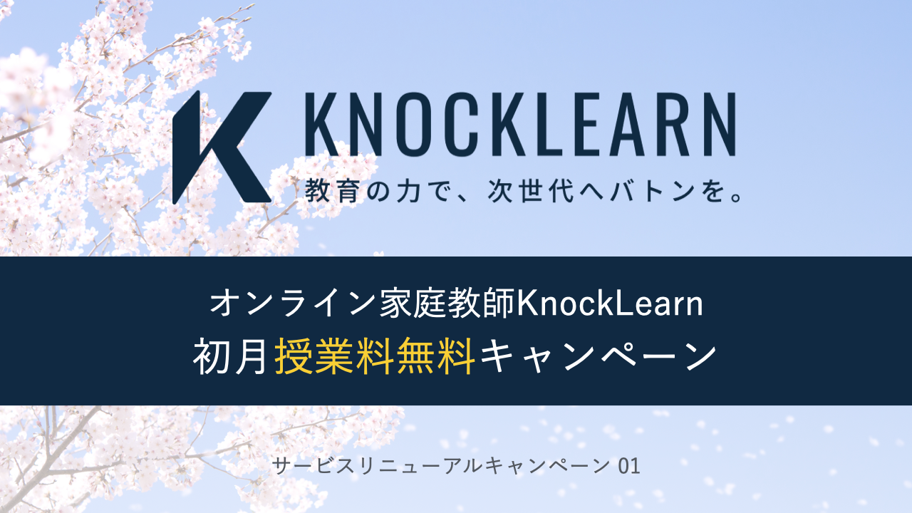 2023年9月30日までにオンライン家庭教師KnockLearnをお申し込みいただいた方に限り、初月の授業料を無料とさせていただきます。