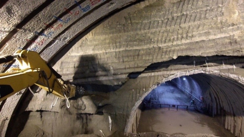 山岳トンネル工事において、切羽(掘削面)の地質観察は非常に重要な管理項目です。事前の設計段階では地質状況を正確に把握することが困難であるため、トンネル掘削時に切羽を直接観察し、地質に応じて適切な掘削を行います。掘削作業中は重機が複数台稼働し、岩盤崩落などの危険性も伴うため、近傍への人の立ち入りは基本的に禁止されています。そのため、これまでは切羽観察を行うたびに重機を停止させ、切羽から離れた安全な位置から地質観察を行っており、安全性と生産性のバランスが課題でした。