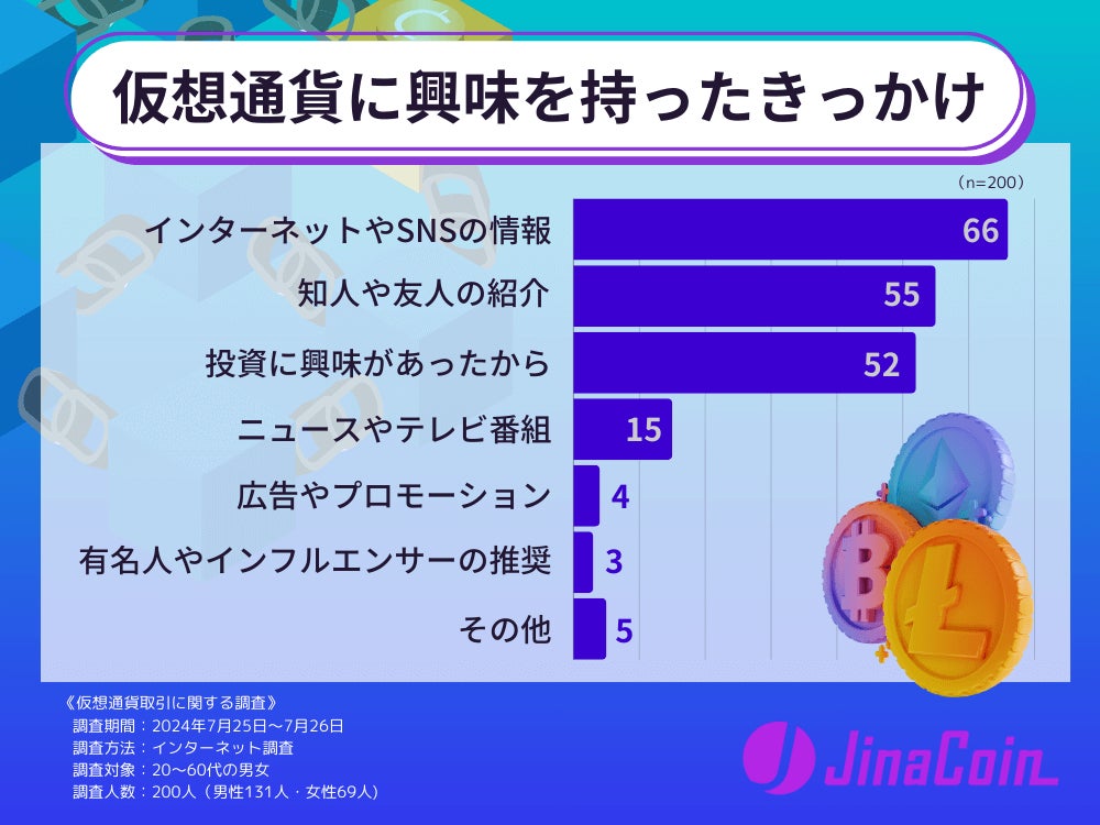 株式会社jaybe(https://jaybe.co.jp/ )が運営する仮想通貨/暗号資産ニュース・情報メディア「JinaCoin(ジナコイン)」( https://jinanbo11.com/ )は、20代以上の男女200名を対象に「仮想通貨取引」についてのアンケート調査を実施しましたので、お知らせいたします。