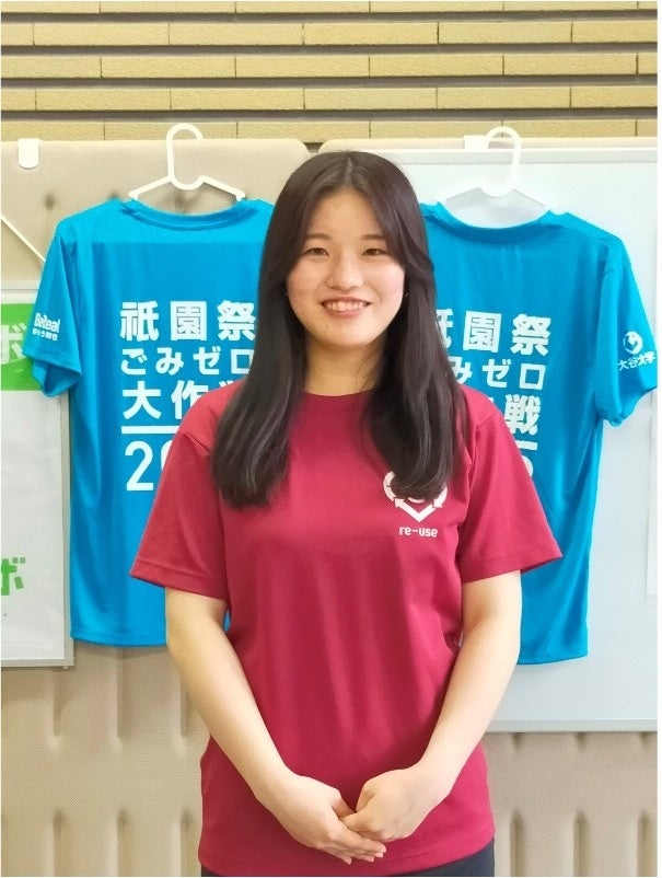 『祇園祭ごみゼロ大作戦』プロジェクトへの参加は、今年で3年目になります。第1学年の時に授業でこの活動のことを知り、岐阜出身の私は、京都らしいイベントに携わりたいという想いで参加を決めました。また、コロナ禍で活動が制限され、人との交流が希薄だったこともあり、一般ボランティアの方をはじめとした、たくさんの人と関われるリーダーに昨年初めて立候補しました。立場上、自分が担当しているエリアと本部からの連絡を同時に把握する必要があり、目配りや気遣いの大切さを学びました。一方、来場者が多すぎてあたふたしてしまった反省もあり、リーダー2年目となる今年は周囲に目を配りながら、主体的に動けるように意識していきたいと思っています。