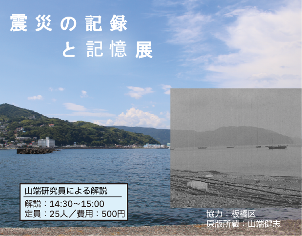 地震や津波、豪雨に土砂災害、日本列島では繰り返し大きな自然災害が発生してきました。私たちは科学技術を発達させて、かつてないほど安全で便利な暮らしを送っているはずであるにも関わらず、突如として姿を現す自然の猛威に対して脆弱なままです。私たちは過去の災害からもっと学ぶことができるのではないでしょうか。過去の災害では、何が起こり、人々はどのように行動し、何を思ったのか。そういった記録と記憶を残すメディアとしての科学技術も今の私たちは持っています。残された情報からメッセージを読み取り、震災から未来を拓いていくために、皆さんと一緒に考えるための企画展を開催します。