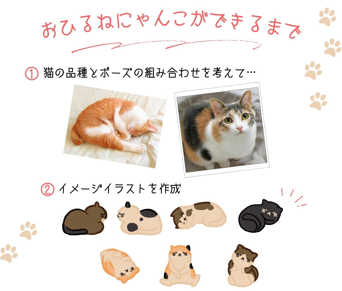 新商品のアイデアを話し合う企画会議で、松村さんが提案したのがにゃんこのお昼寝姿。