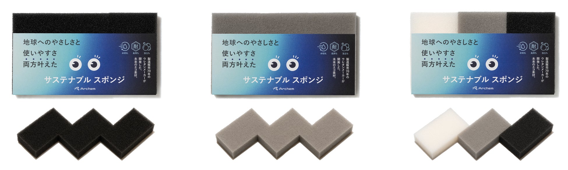 ウレタン製品の製造・販売を手掛ける、株式会社アーケム(本社:東京都港区、代表取締役 Global CEO:草野 暁、以下「当社」)が販売するヤシ由来の植物性素材を採用した「サステナブル スポンジ」に、新色ブラック/グレーが加わりました。既存品のオフホワイトと新色それぞれの単色セットと3色セットがラインナップ。新製品は5月1日(木)よりインターネットサイトで発売します。