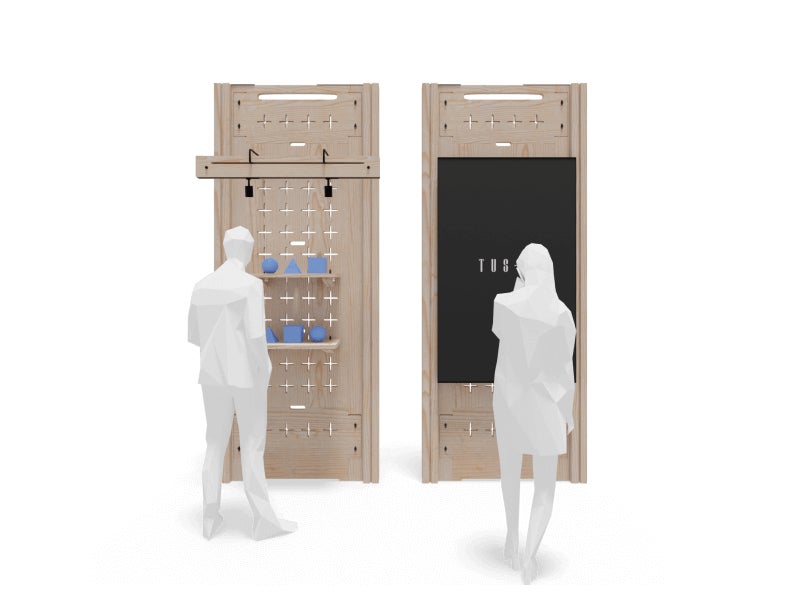 会場では、モニターの設置やアート作品の展示などで空間を演出し、『TUS+++』ならではの拡張性を表現し、出展者や来場者にSDGs(※1)への興味関心を高めてもらう取り組みとして、組立式木製ブースというオリジナルプロダクトを展示します。
