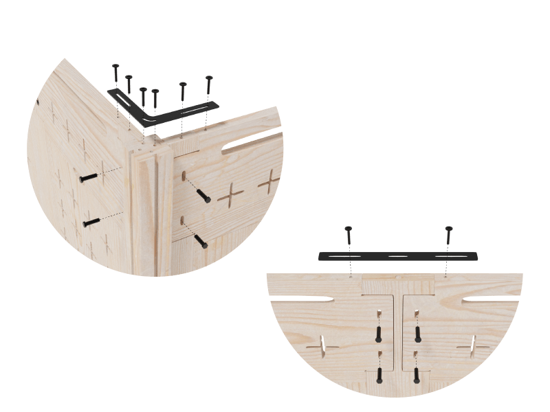 構成 | 木製パネル1800 6枚 パネルベース トップ 6枚 パネルベース ボトム 6枚 コーナーピラー(CP) 4本 CPフレーム L・R 3セット センターピラー 3本 ビーム1800 1セット |