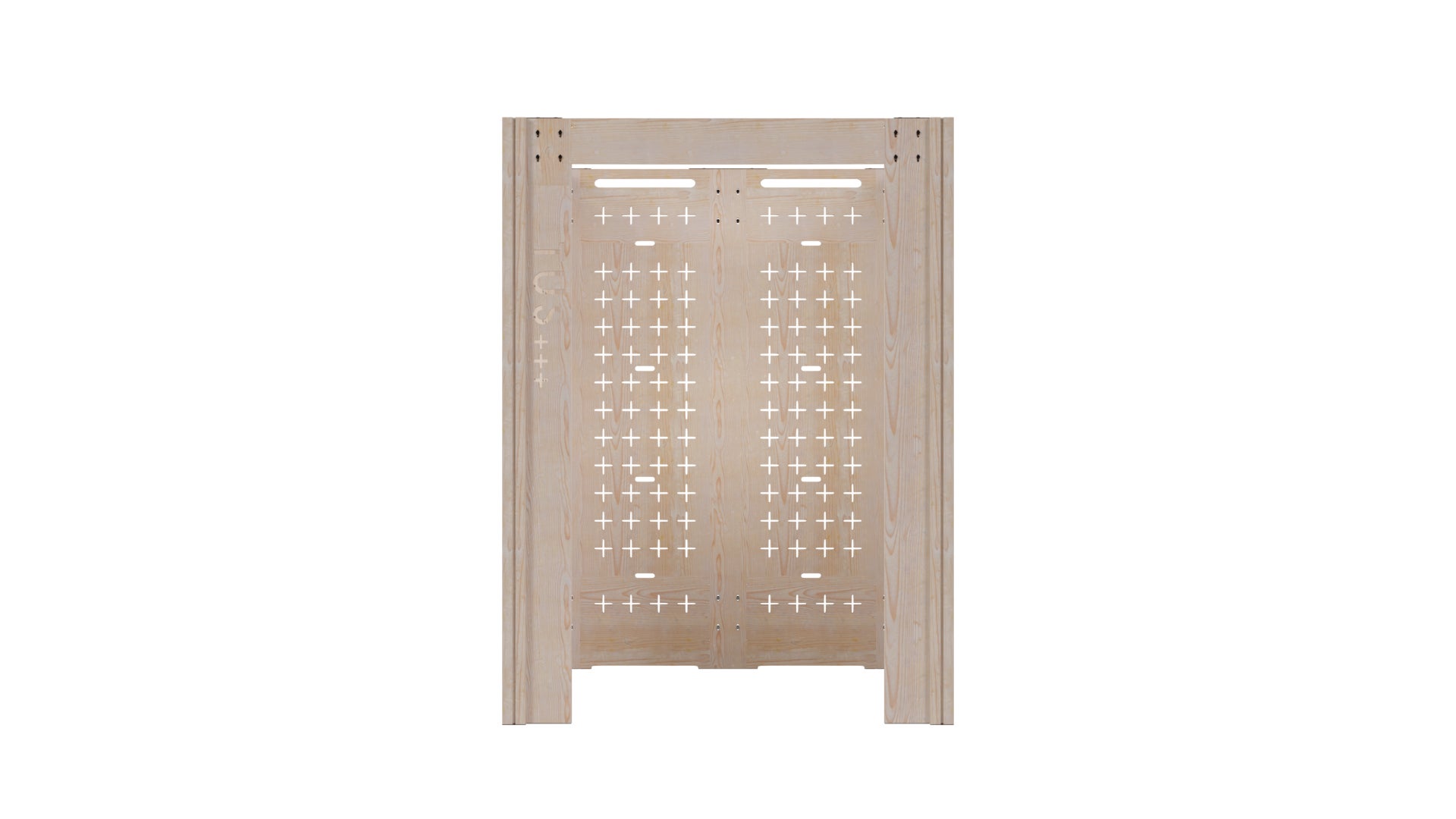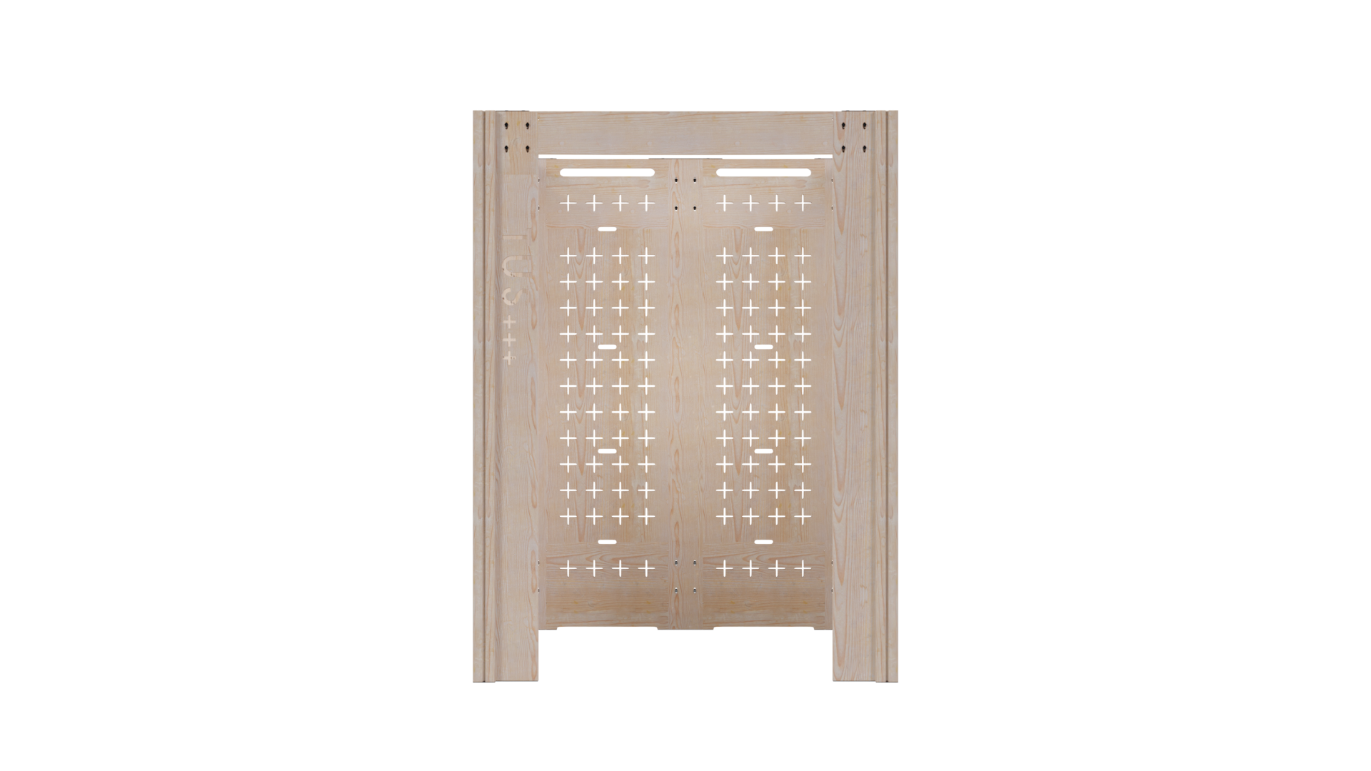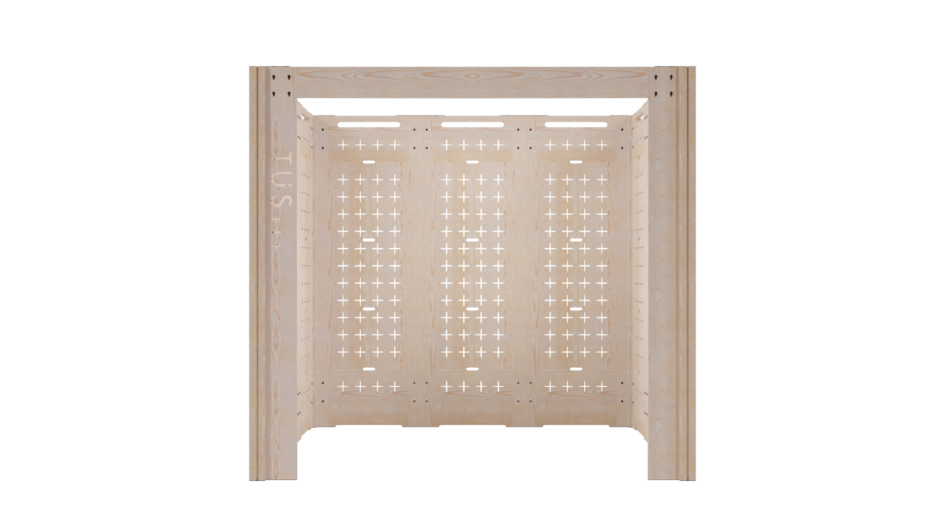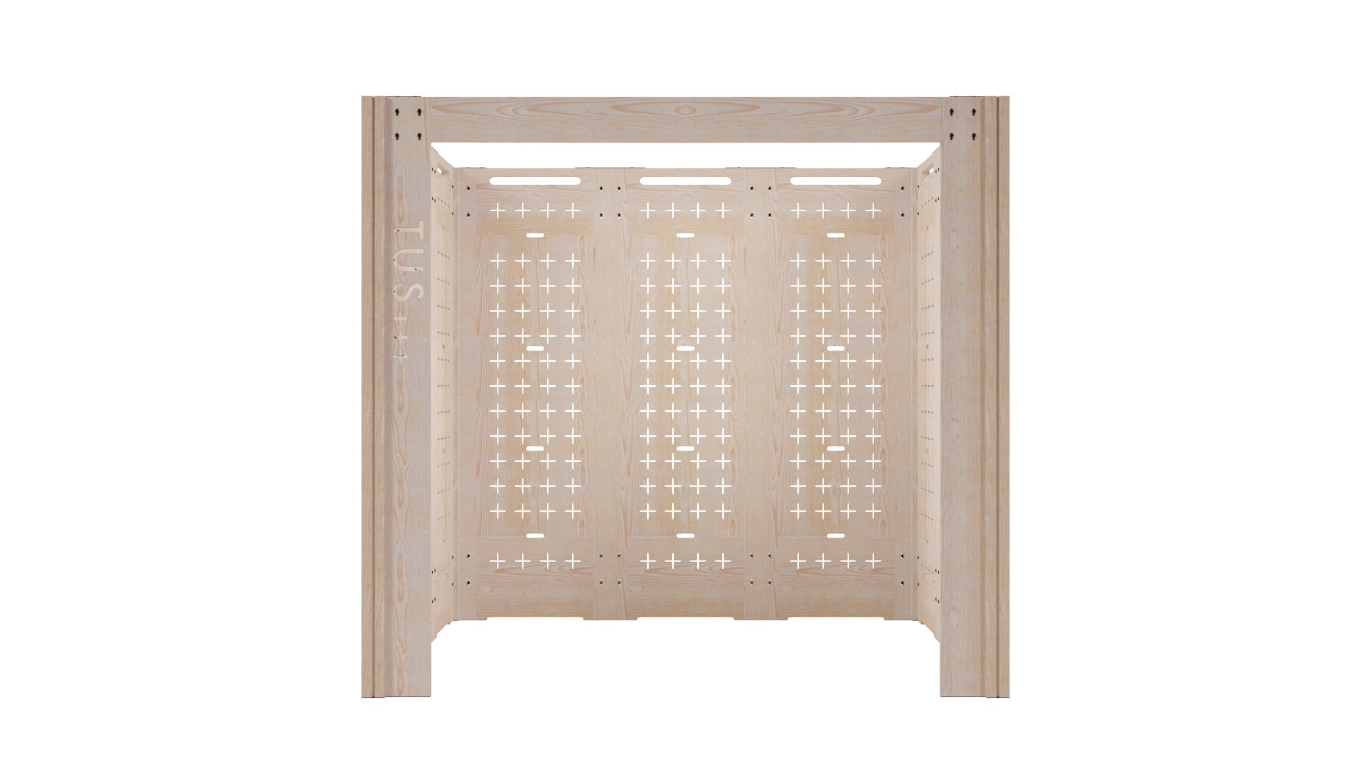 『TUS+++』は、メインの素材に木造マンションにも使われるCLT(直交集成板)、接合部には鉄を使用しています。組立ては2名で1時間程度、簡単に組み立てられるため、繰り返し利用が可能です。