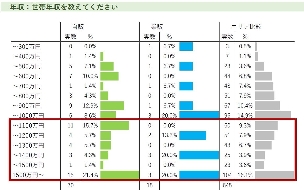 当社にて新築戸建てを購入した方の年代は30代が56.4%で、世帯年収は1,000万円以上が約半数。