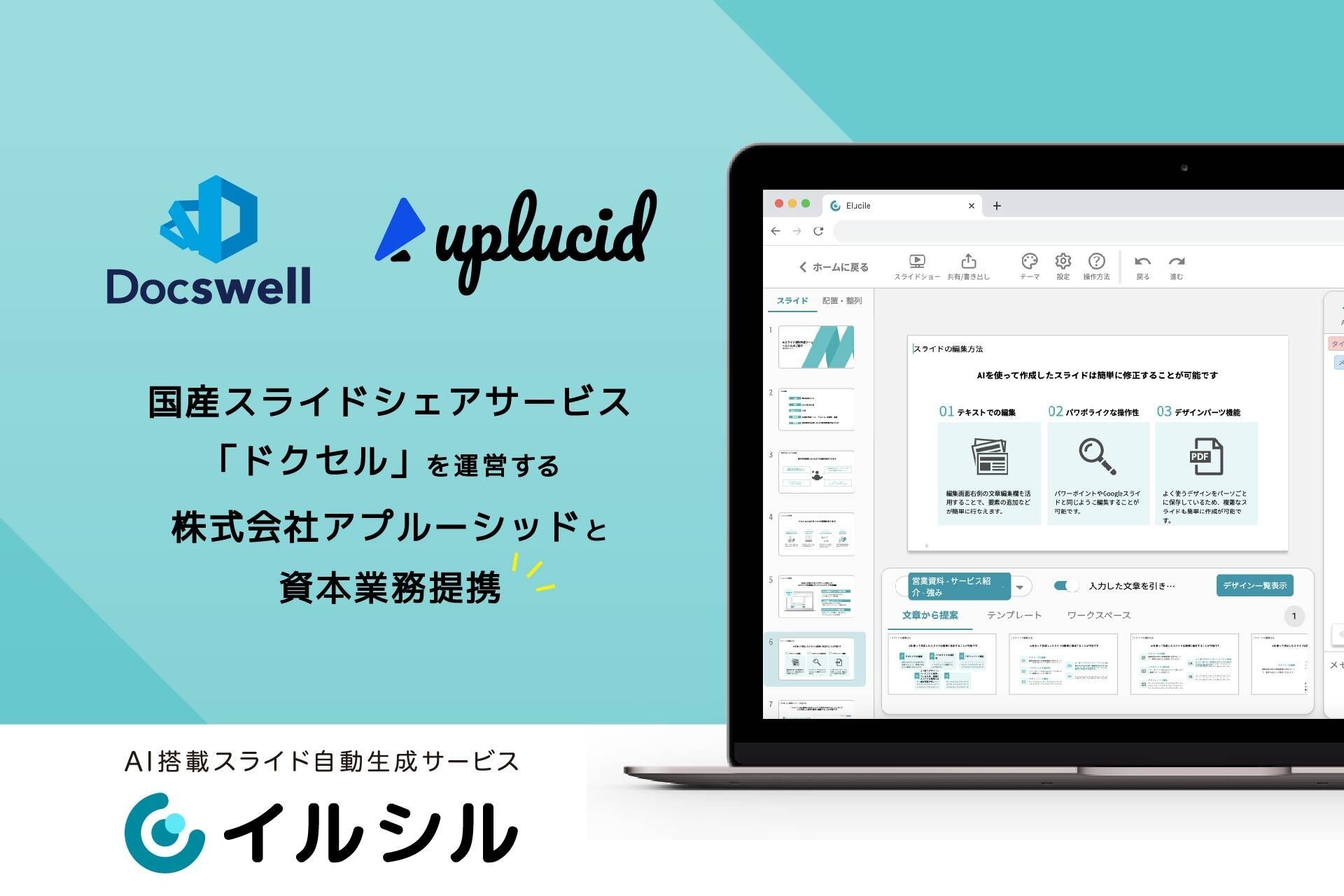 AI搭載スライド自動生成サービス「イルシル」を提供するルビス、国産スライドシェアサービス「ドクセル」を運営するアプルーシッドと資本業務提携