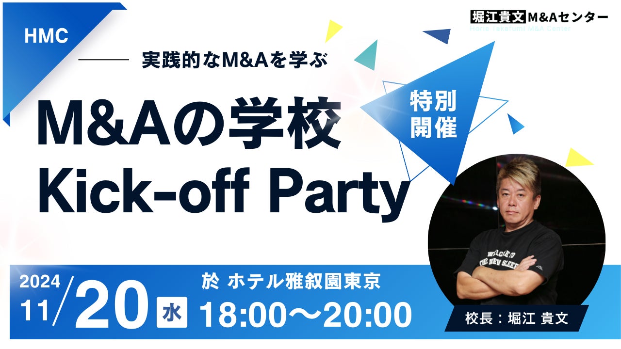 株式会社unlock.ly(本社:東京都港区、代表取締役:三島 徹平)および堀江貴文氏率いるSNSmedia&consulting株式会社のM&A仲介サービス「堀江貴文M&Aセンター」内のコミュニティ「M&Aの学校」のキックオフイベントを開催いたしますので、お知らせいたします。イベント内では「M&Aの学校」のカリキュラムを公開する他、一部コンテンツを体験していただき、校長・堀江貴文のQ&Aセッションも予定しております。どうぞ皆様奮ってご参加ください。