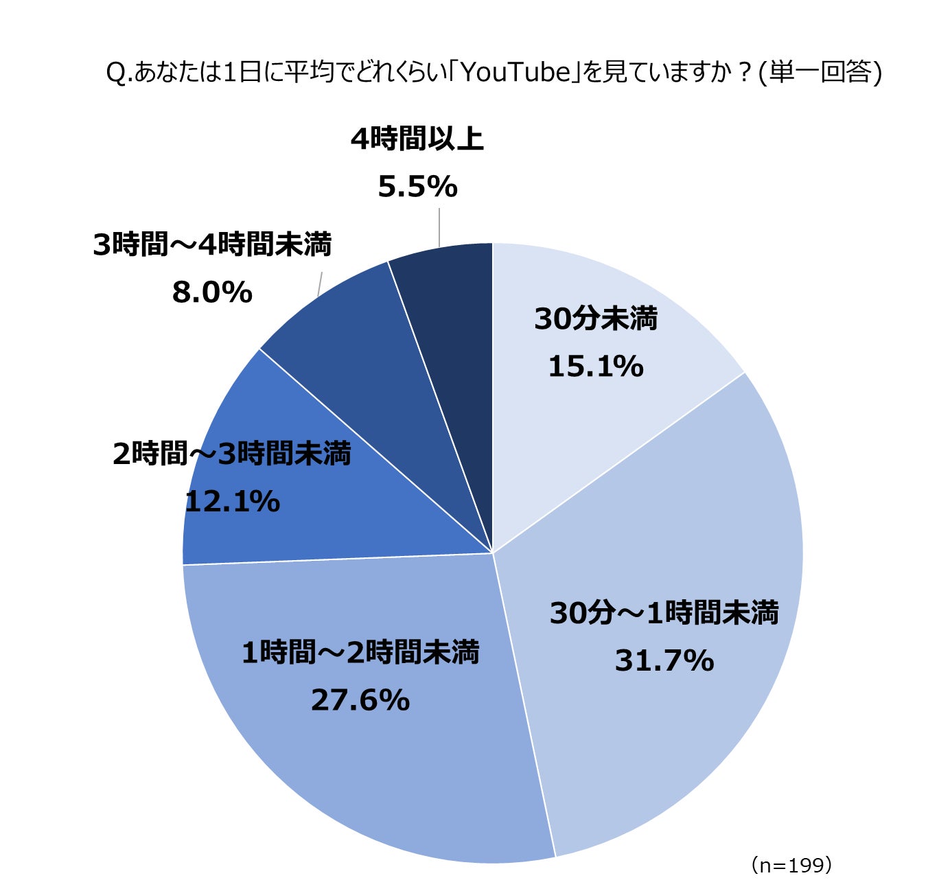 YouTube視聴ユーザーの約5割が「1日あたり1時間以上視聴」と回答