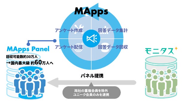 株式会社マーケティングアプリケーションズ(本社:東京都渋谷区、代表取締役社長:竹中 司、以下「マップス」)は、株式会社モニタス(本社:東京都港区、代表取締役社長:林 秀紀、以下「モニタス」)が連携しマップスが提供する、マーケティングリサーチプラットフォーム「MApps forSurvey」とセルフ型アンケートツール「サーベロイド」に、モニタスの運営するアンケートモニター連携を開始致します。