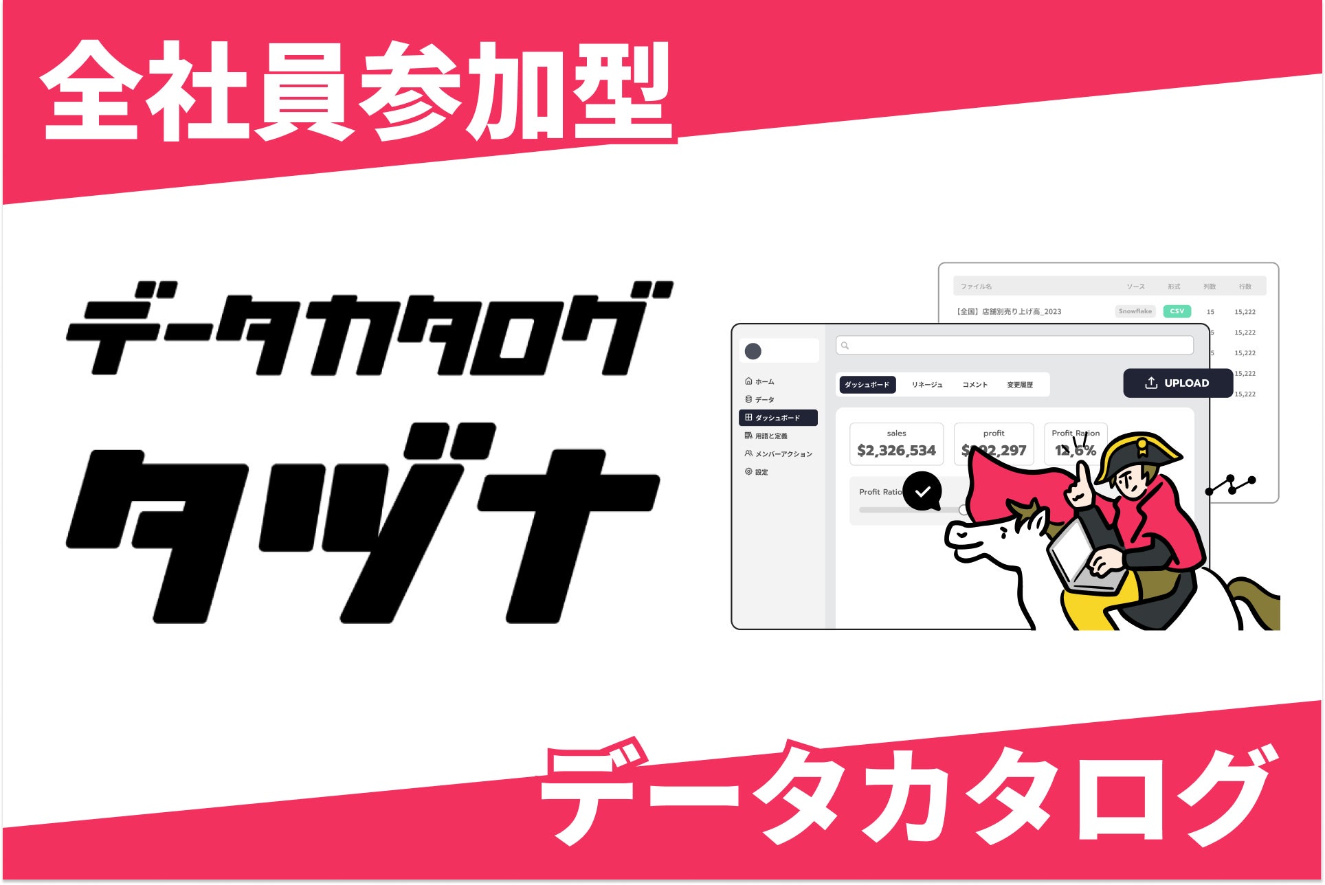 データの専門家が社内に不足していても大丈夫!大きな挑戦は、みんなで乗り越えましょう。社内データの手綱を握るプラットフォーム。データカタログ「タヅナ」誕生!