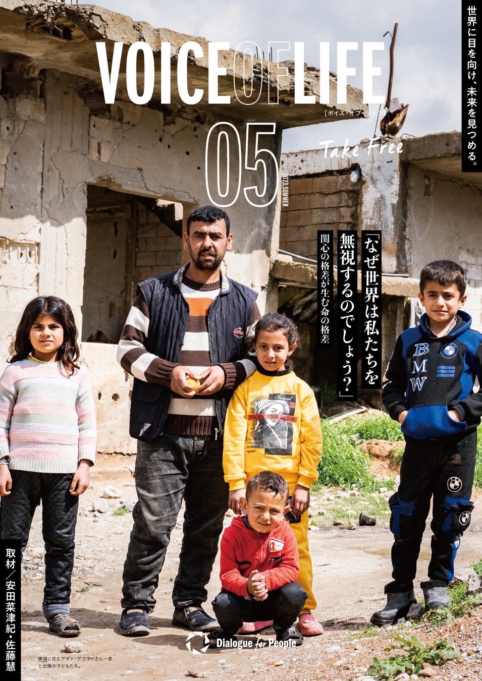 2023年夏発行の第5号のテーマは、「なぜ世界は私たちを無視するのでしょう?」関心の格差が生む命の格差。今春取材に赴いたシリア北東部に暮らす人々への取材レポートをお届けします。2011年から戦争が続き、現在も政権やその後ろ盾のロシアによる市民の弾圧が続くシリア。2023年2月6日、そのような状況に追い打ちをかけるように、一帯を大地震が襲いました——。現地の方々の声を、写真と文章で感じていただければ幸いです。