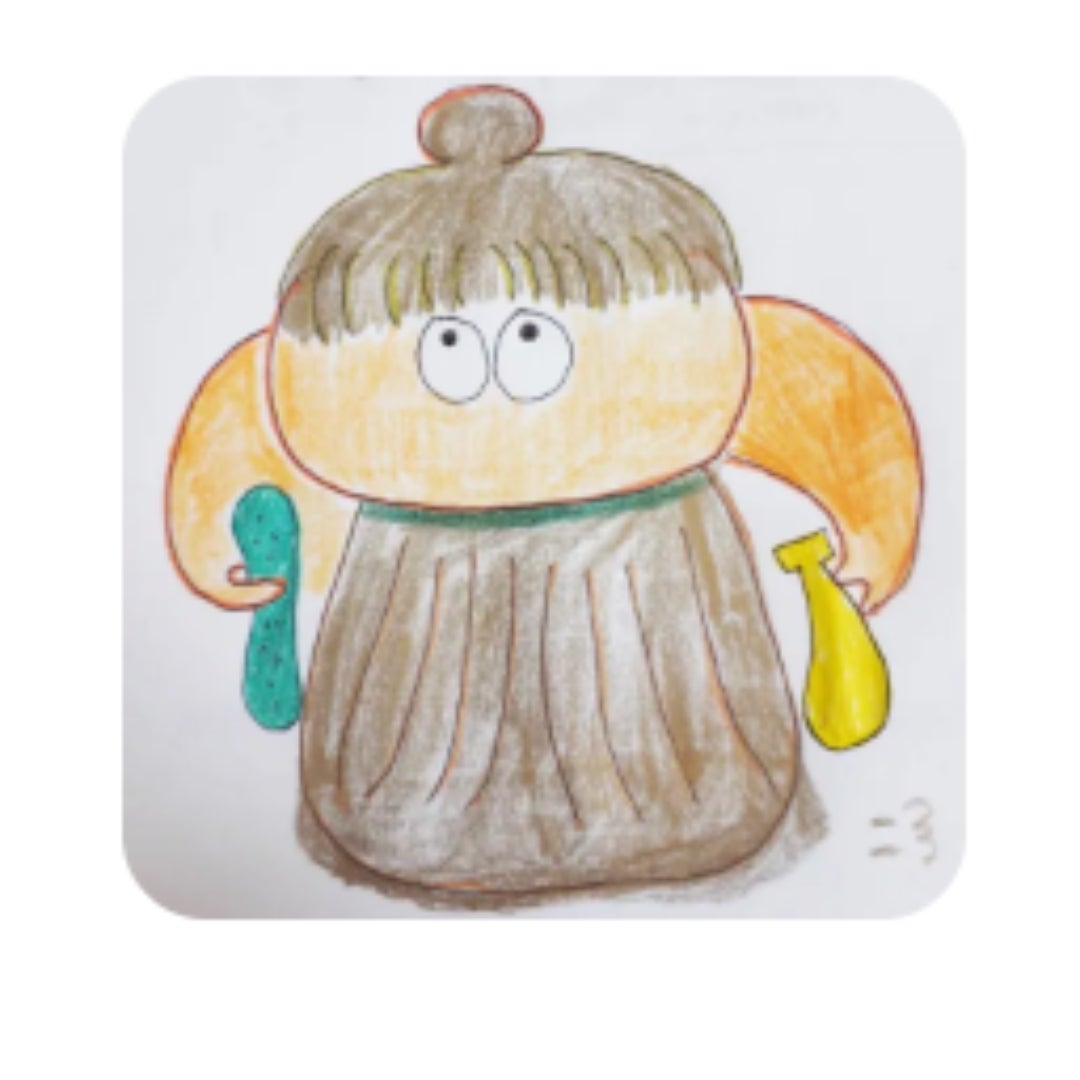 ゆとりのあるゆったりとした妖怪。普段の暮らしの中ではなかなか目にする機会はないが気持ちにゆとりが生まれて心が豊かになった瞬間、たまに見えることがある。手に持っているのは、きゅうりとバナナ。