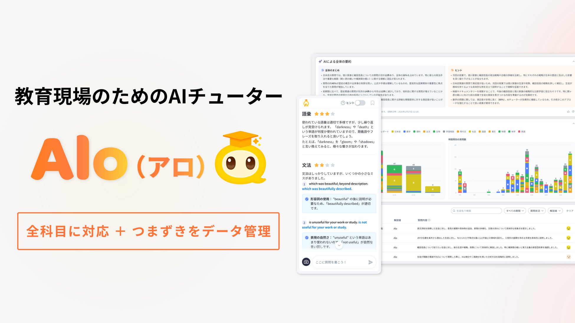 全教科の質問にAIが24時間対応、教育現場のためのAIチューター「Alo(アロ)」を2026年3月よりリリース