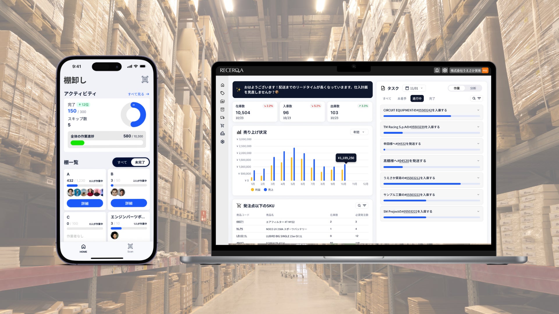 『RECERQA(リチェルカ)』は、モダンな開発技術とAIを用いることで仕入・在庫・販売管理業務の体験をアップデートするSCM(サプライチェーンマネジメント) SaaSです。
