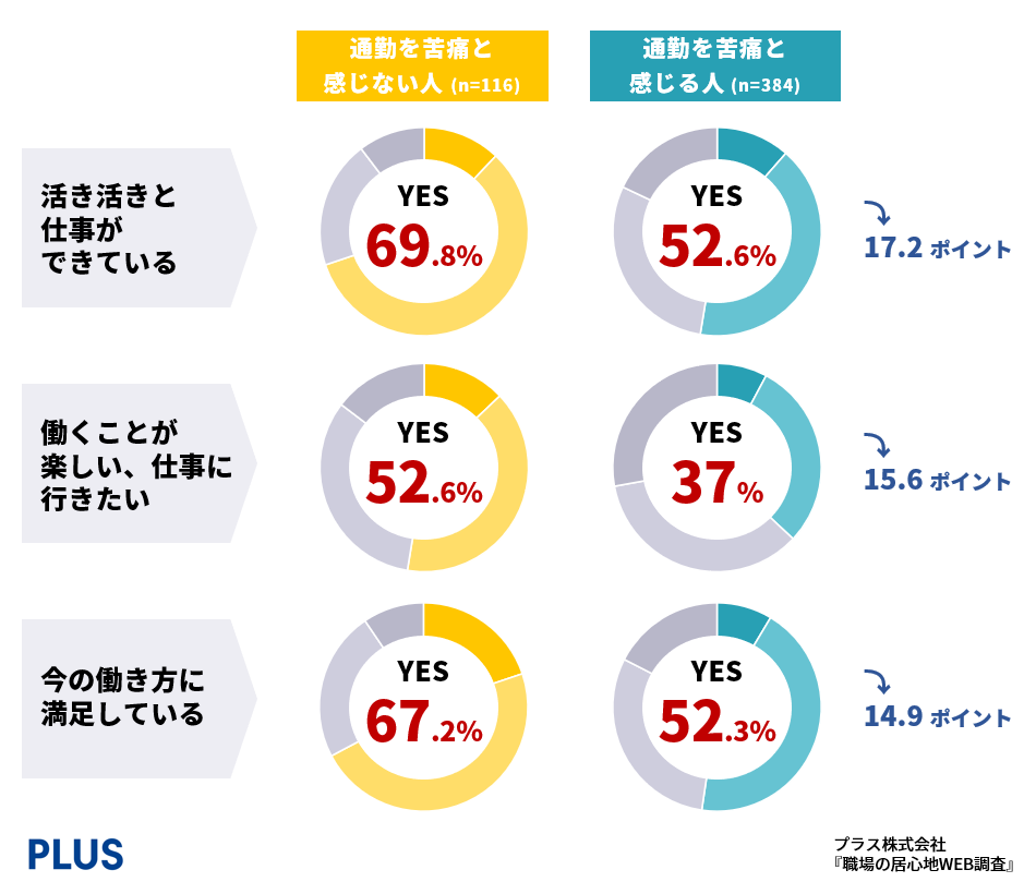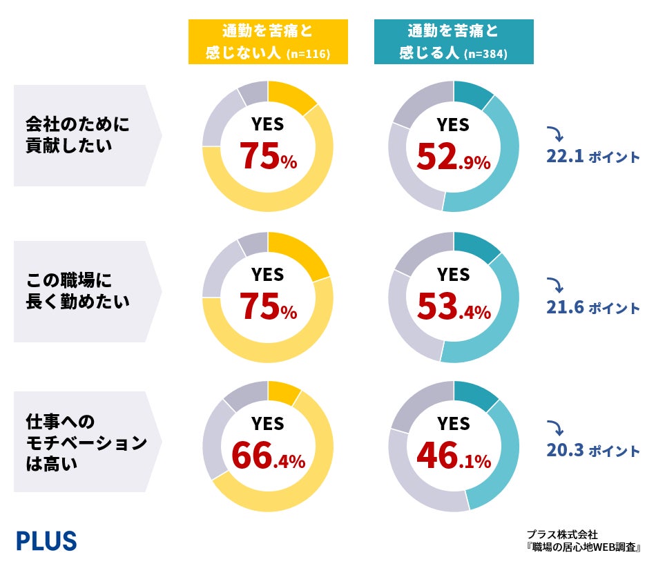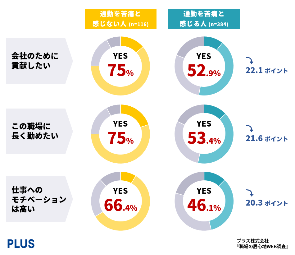 【職場の居心地WEB調査】「通勤時間が苦痛」な会社員、仕事へのモチベーションが20.3ポイント低下