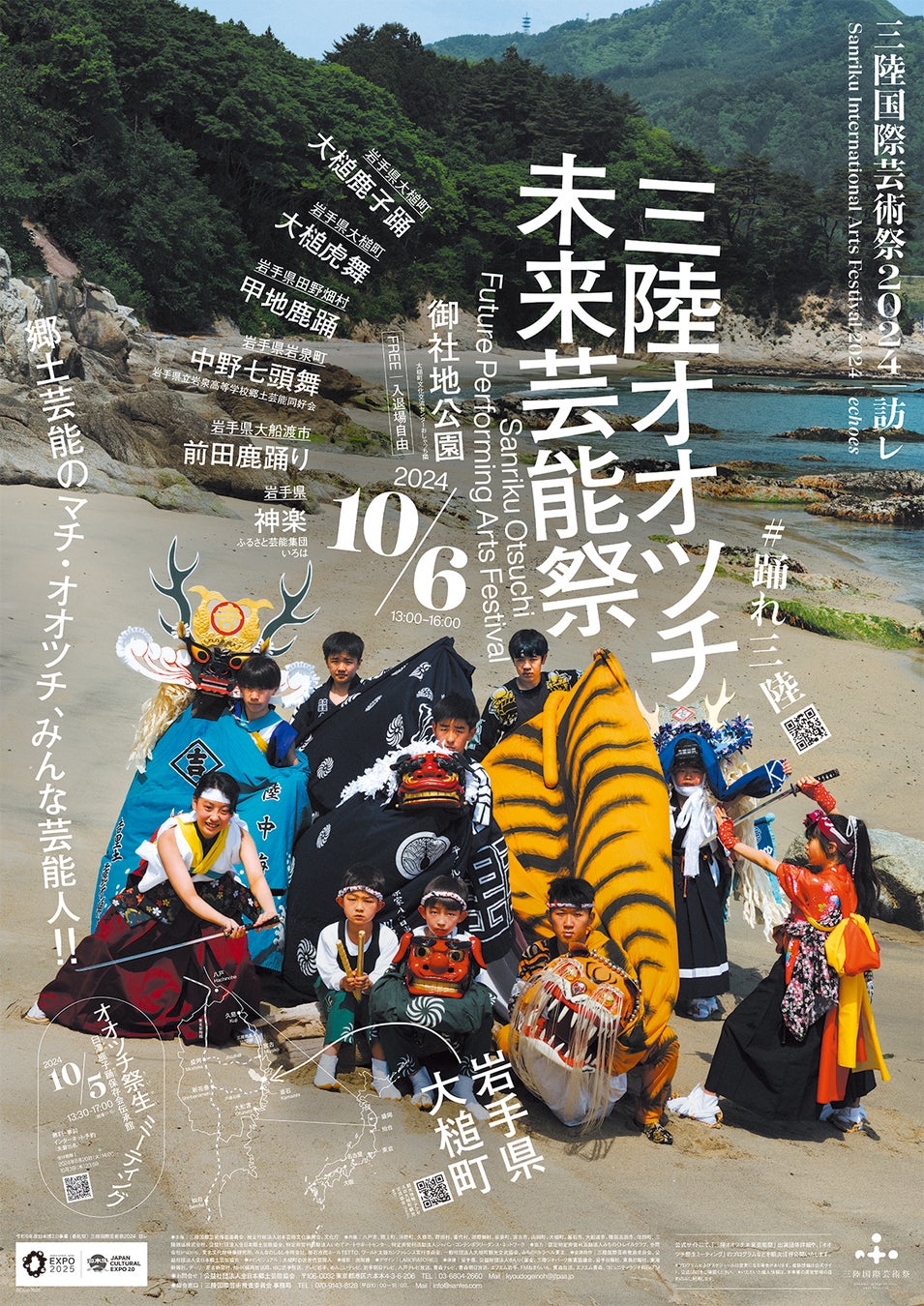 共催|八戸市、階上町、洋野町、久慈市、野田村、普代村、田野畑村、岩泉町、宮古市、山田町、大槌町、釜石市、大船渡市、陸前高田市、住田町、三陸鉄道株式会社、公益社団法人全日本郷土芸能協会、特定非営利活動法人いわてアートサポートセンター、特定非営利活動法人ジャパン・コンテンポラリーダンス・ネットワーク