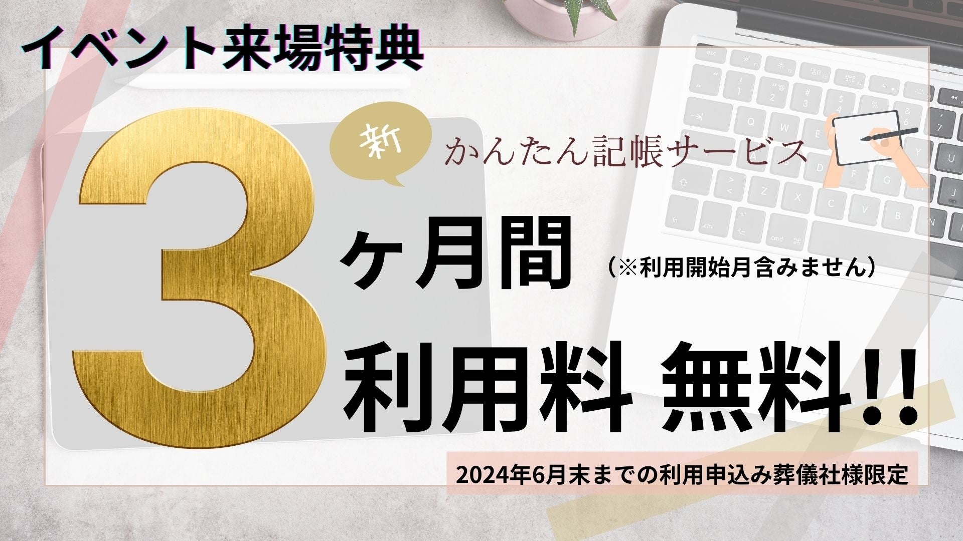 イベント来場葬儀社様は、6月末までの利用申込期限内にお申し込みいただくと、利用開始月を含めずに、3ヶ月間「かんたん記帳サービス」の利用料が無料となります。
