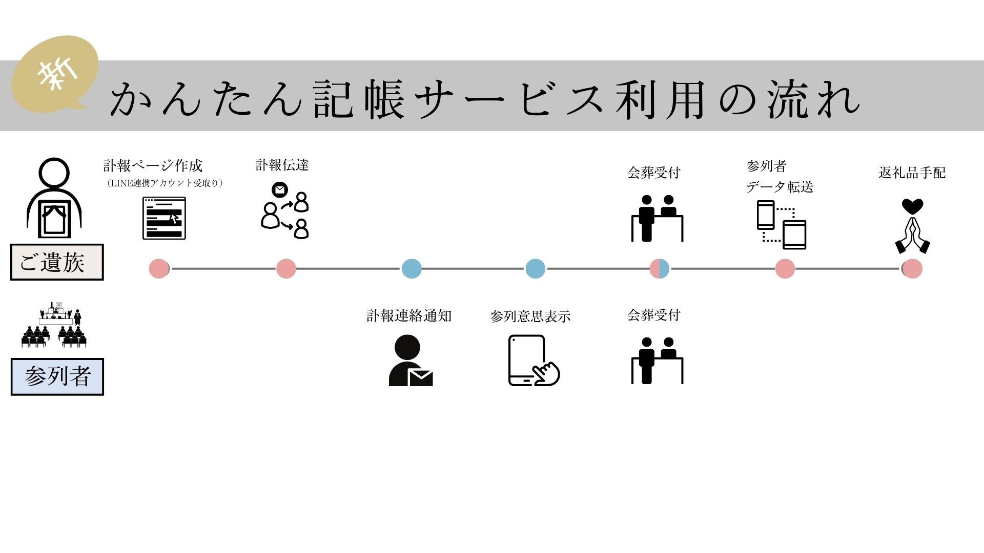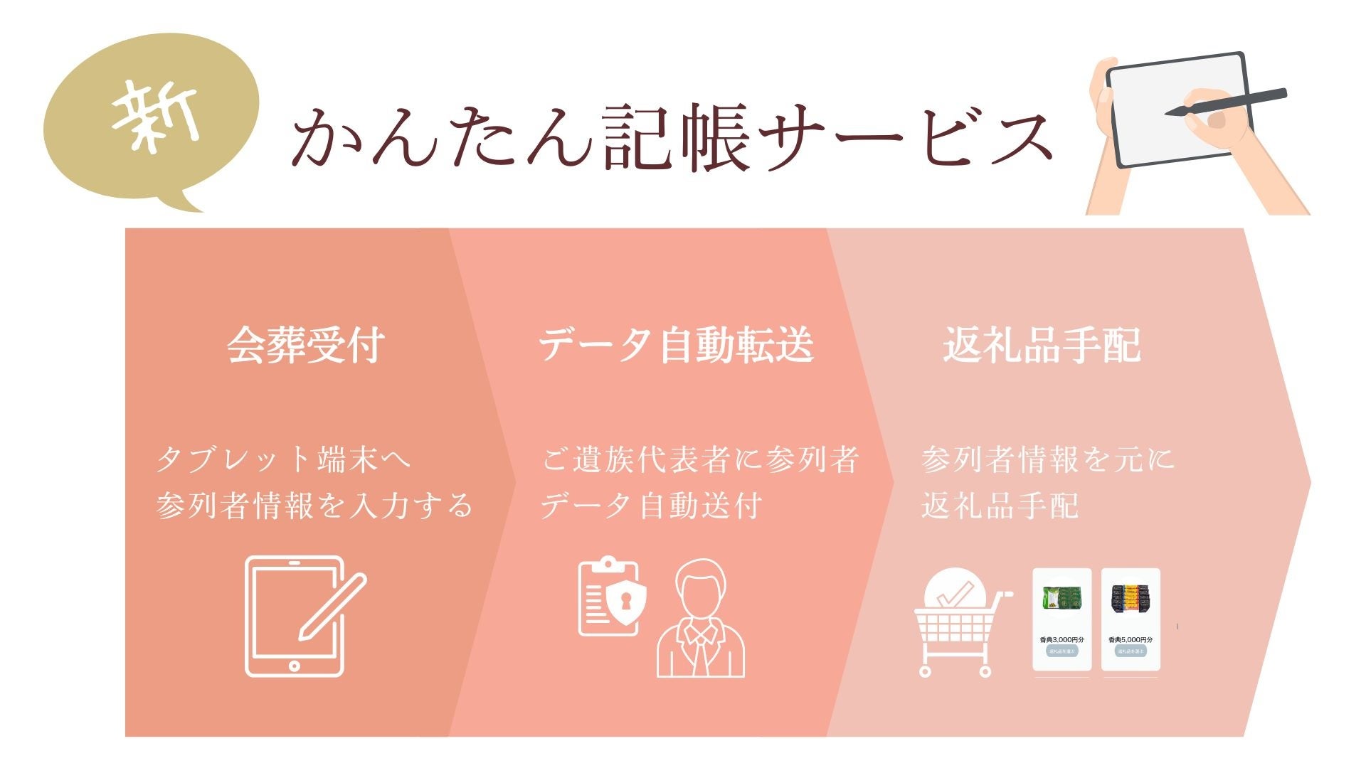 「かんたん記帳サービス」は、通夜・葬儀式時、参列者の芳名帳記入プロセスを効率化するために設計されたサービスです。