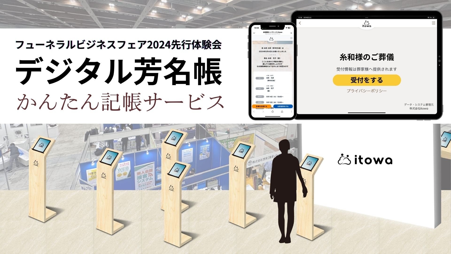 先行して、5月29日と30日に開催されるフューネラルビジネスフェア(出展詳細:https://itowa71.com/fb2024)では、この新サービスの操作体験が可能です。実際の利用開始日よりも前に、先駆けて新サービスの特長を体験し、利便性をご確認いただけます。