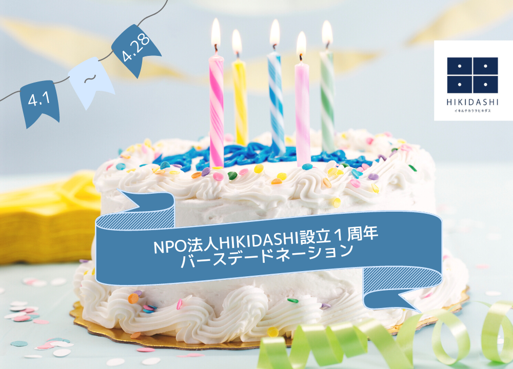 NPO法人HIKIDASHI設立1周年を記念して、バースデードネーションキャンペーンを実施します!