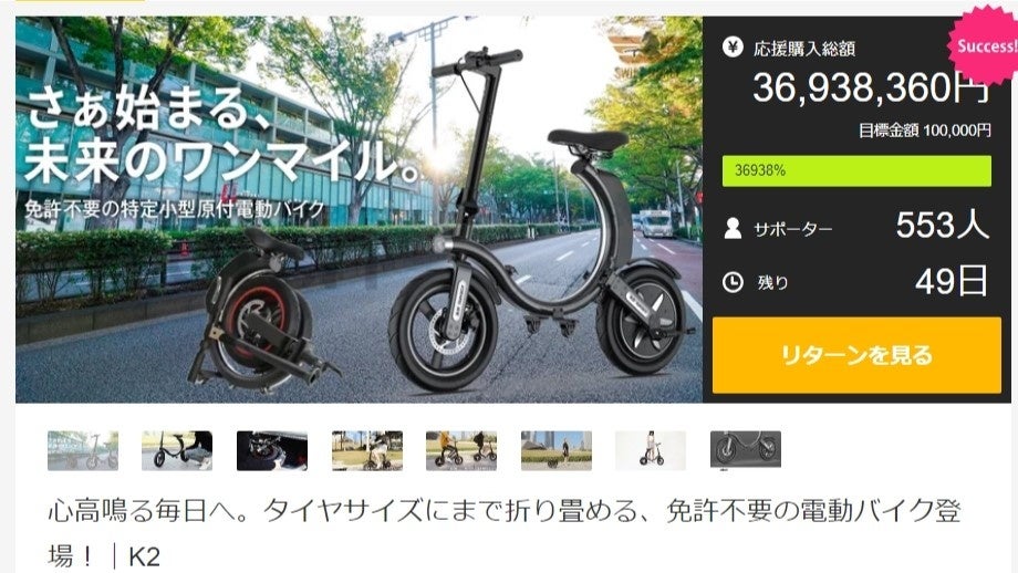 Makuake 開始初日に総応援金額1000万円突破!3段階の折り畳みでキャリーケースのように持ち運べる電動バイク「SWIFT HORSE K2」が最大29%OFFで7月9日まで実施