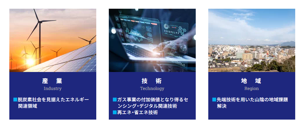 初期的には、脱炭素・エネルギー及びDX領域や、山陰の地域課題解決に関連するスタートアップとの連携を通して、新たな価値を提供し循環させていくことを目指してまいります。