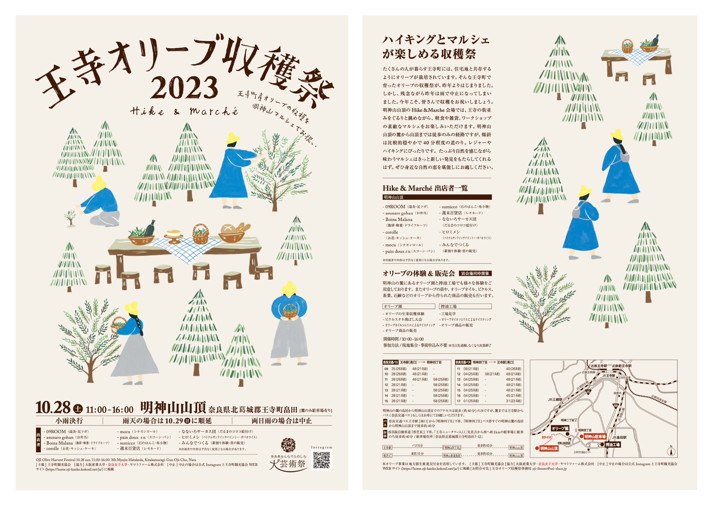 そんな王寺町で育ったオリーブの収穫を祝ったイベント『王寺オリーブ収穫祭』を開催します。