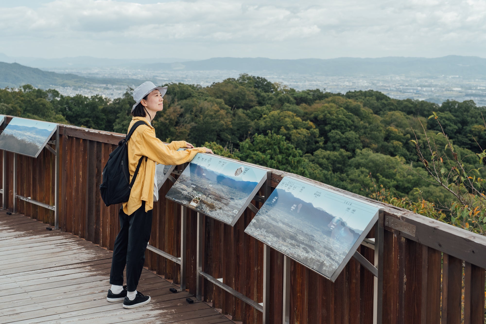 山頂は360度の大パノラマで、大阪の阿倍野ハルカスや空気が澄んでいれば明石海峡大橋も見渡せます。