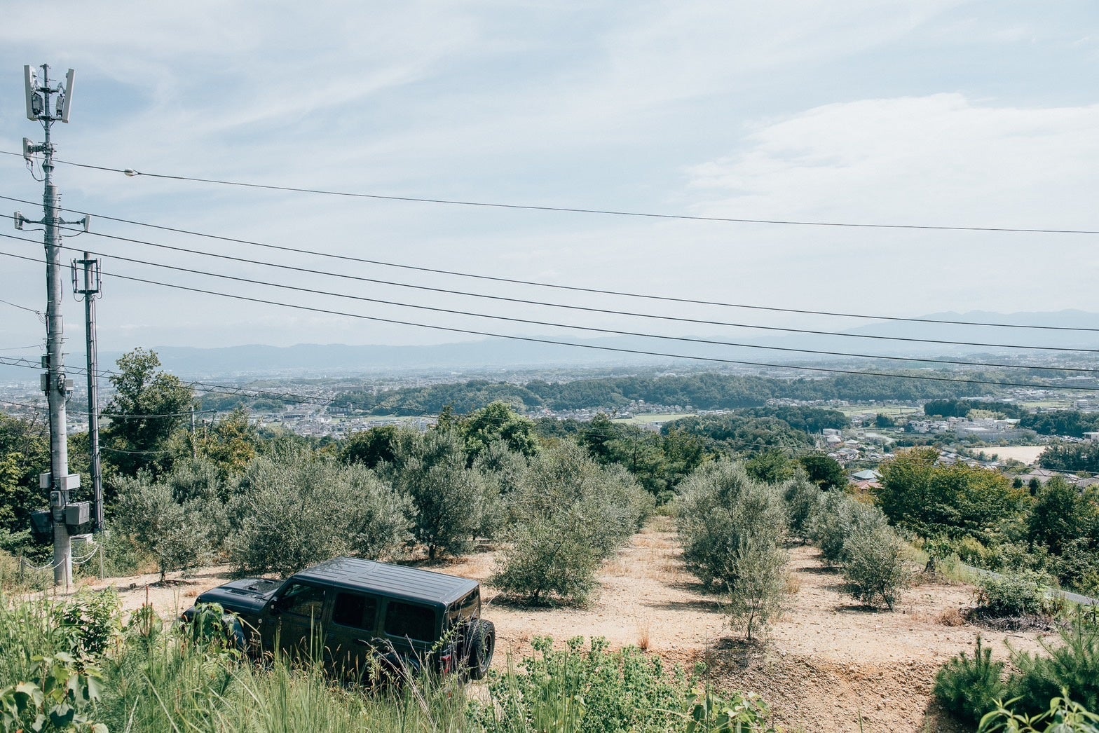 王寺町の新たな特産物として期待が高まるオリーブ。明神山の麓にはオリーブ畑が広がっている。