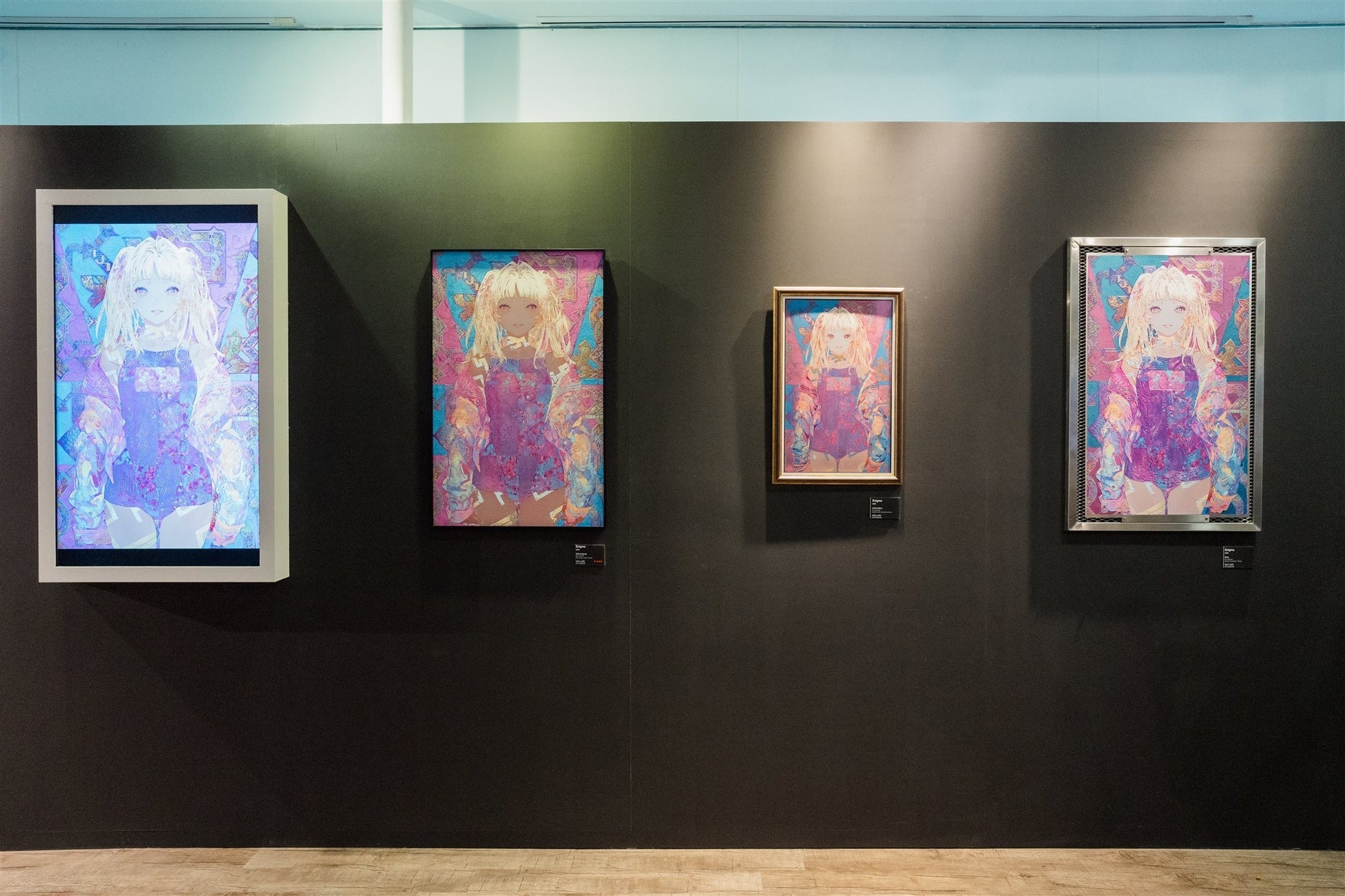 本展示会は、デジタルアートの新たな可能性を追求し、デジタル作品をフィジカルアートに昇華させる試み(Releak)をテーマとし、SSS by applibotに所属するアーティスト、セブンゼルとタイキに焦点を当て、彼らの幻想的で魅力的なデジタル作品を展示しました。