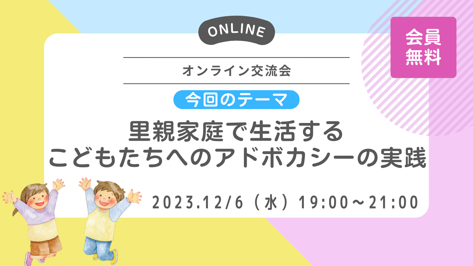 12/6(水)|「里親家庭で生活するこどもたちへのアドボカシー実践」をテーマにオンライン交流会を開催