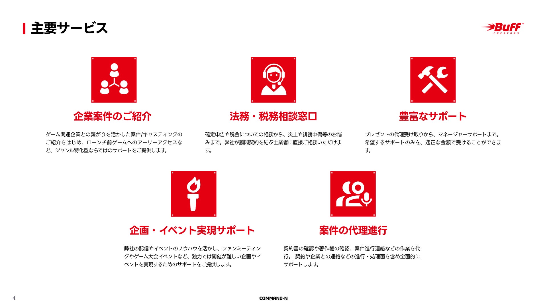 ゲームシーンで多角的な業務を行っている株式会社COMMAND-N(本社:東京都豊島区、代表取締役:菊地一成)は、クリエイターを対象とした新しいネットワークおよびサポートサービス「BUFF CREATORS」をリリースすることをお知らせいたします。本サービスは、ゲーム関連インフルエンサーの様々な活動を全面的にサポートし、新たな活躍の場を提供することを目的としています。