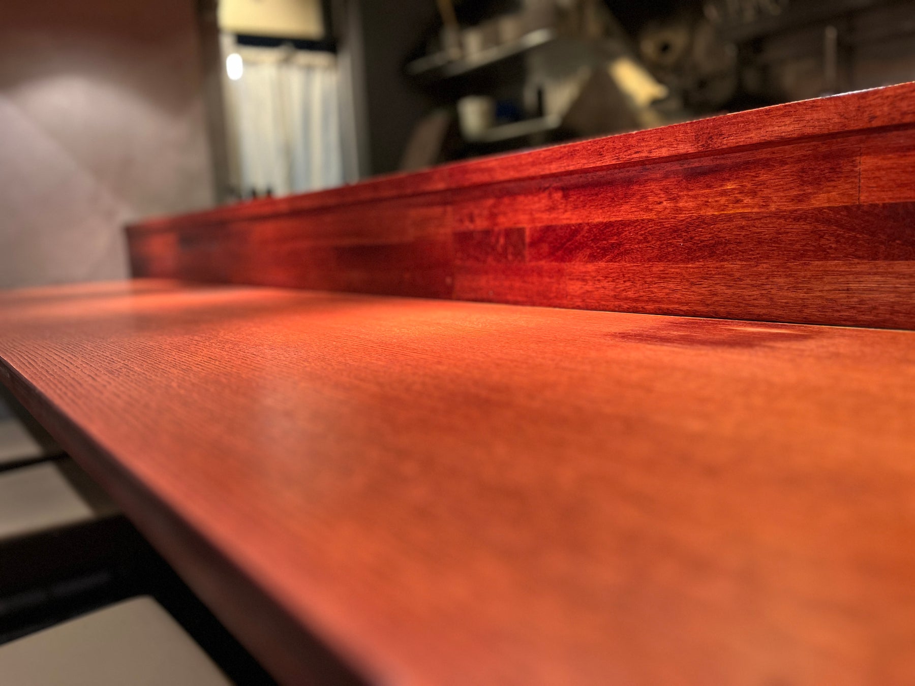 店内はグレーの壁にテーブルは温かみのある栗色を採用。カウンター席と2人席、1組予約限定で個室と特別コースもご用意しております。(予定)