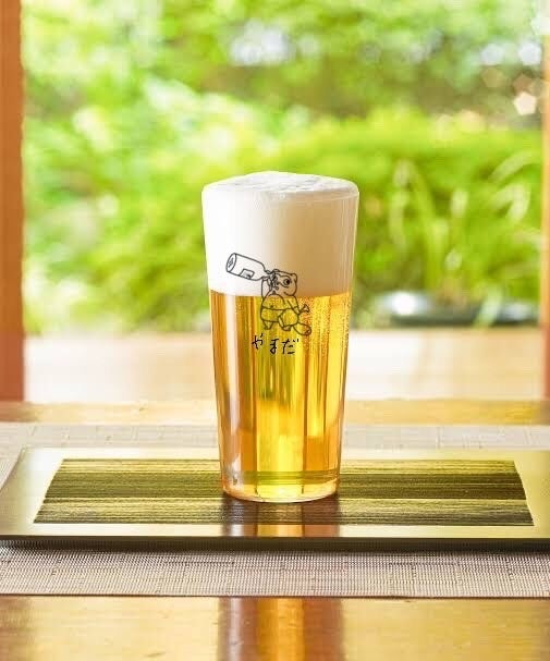 ロゴは可愛らしいタヌキモチーフとなっており、グラスは特注。飲み物を入れることで、ロゴがより目立つ遊びゴコロを取り入れながらもオリジナリティ溢れるかたちになっております。
