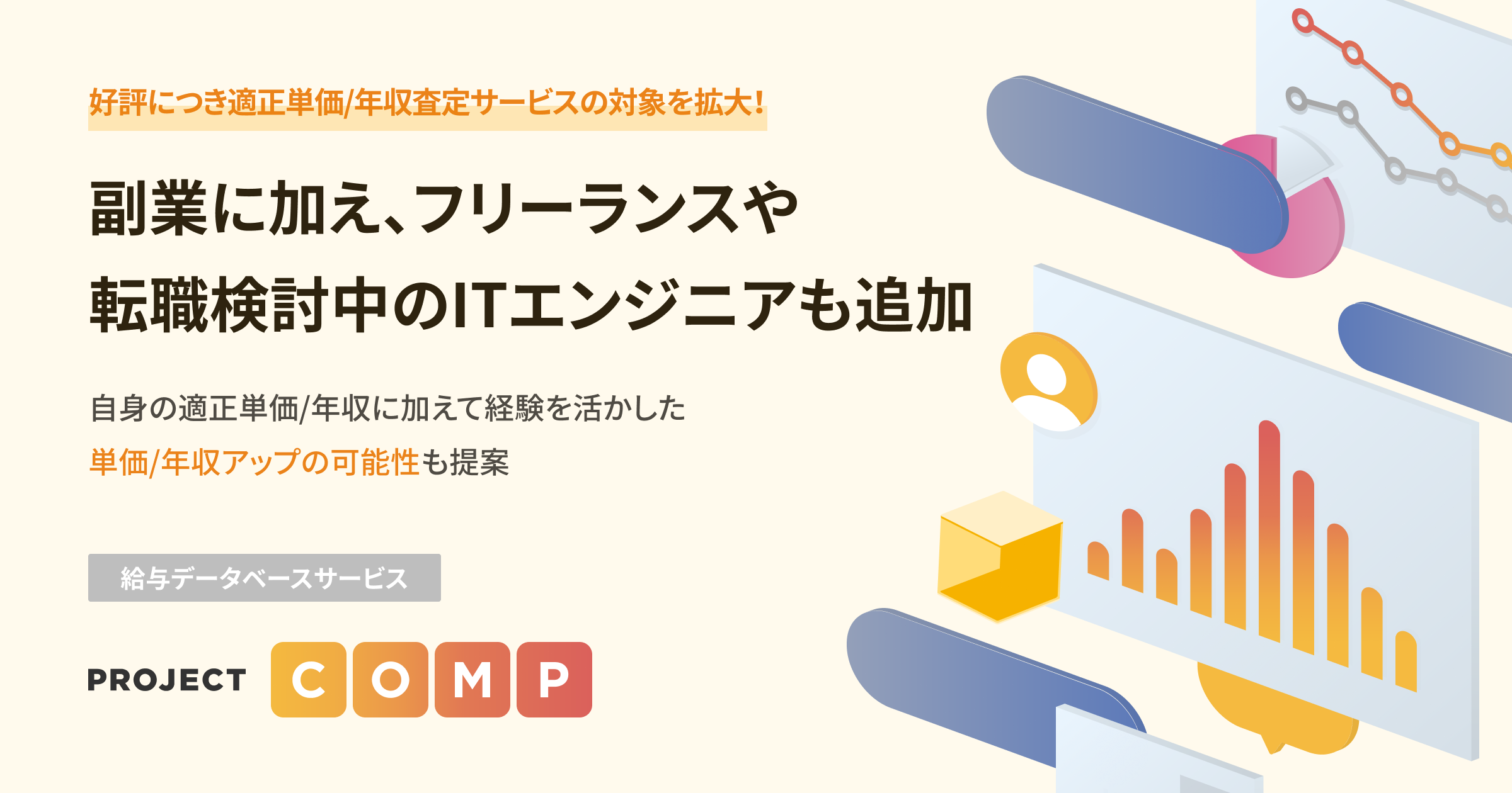 PROJECT COMP、好評につきITエンジニア向け適正単価査定サービスの対象を副業に加え、フリーランスや転職にも拡張!