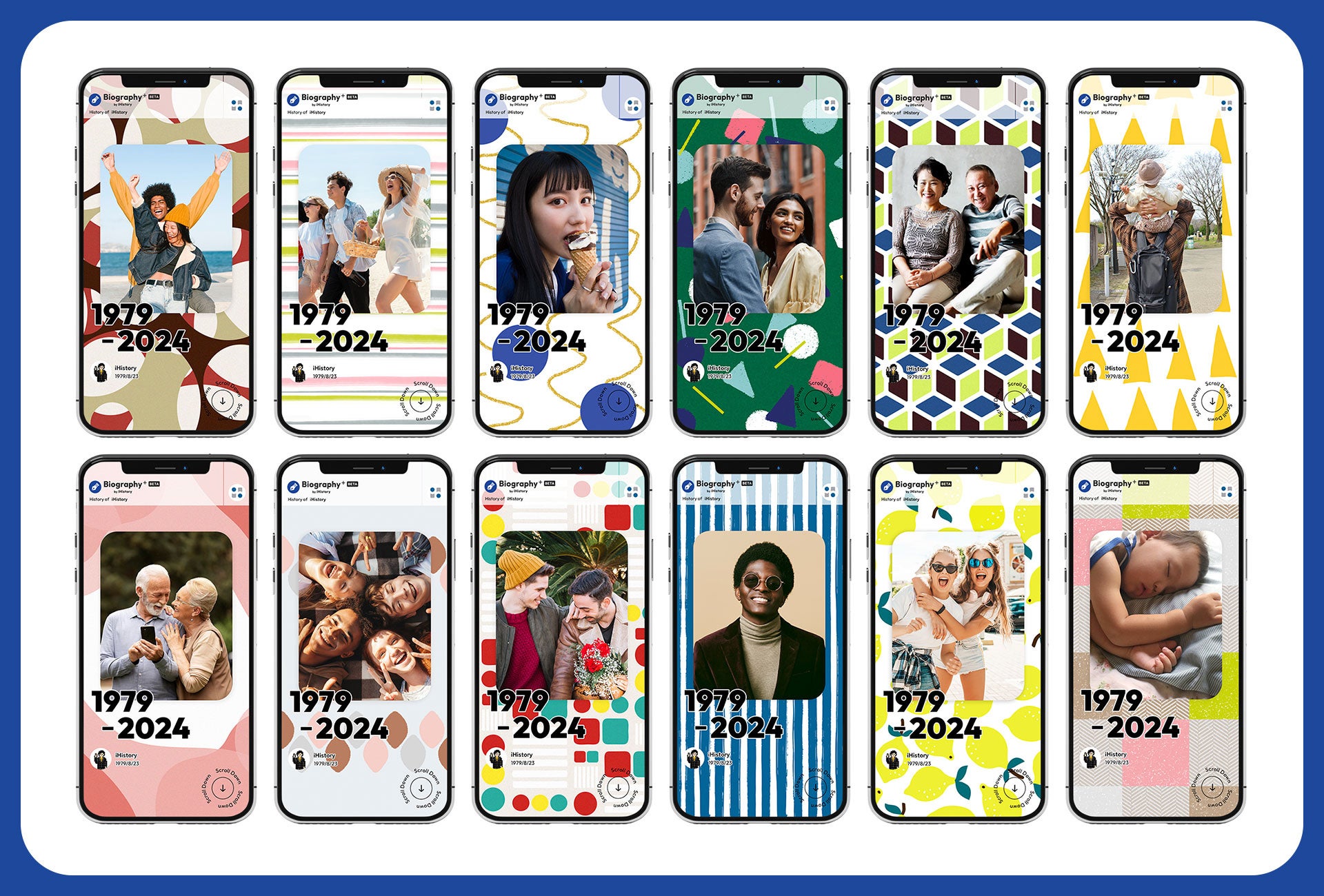 年表の背景は、46種類以上のテンプレートから好きなデザインを選べるほか、オリジナル画像の設定も可能。観るたびにワクワクできる、ジブンらしい年表にカスタマイズできます。