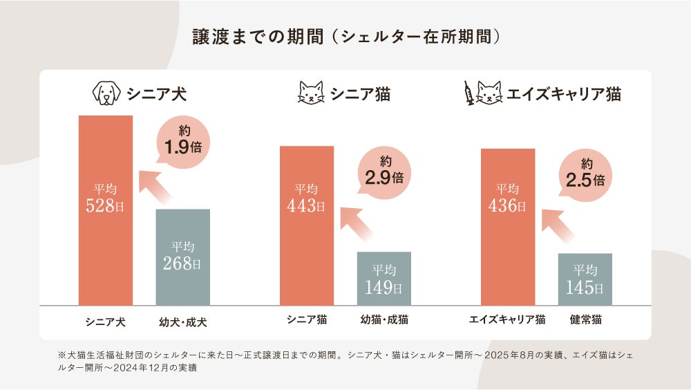 特に、シニアや特定の病気、ハンデを持った子や人慣れに時間がかかる子は、譲渡が決まりにくいという課題があります。