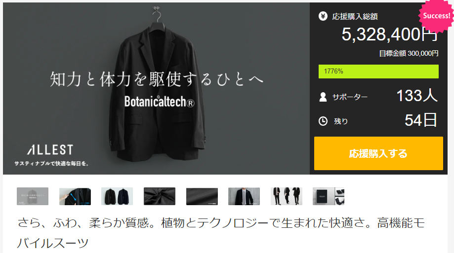 販売サイト Makuake https://www.makuake.com/project/allest_fw_suit/