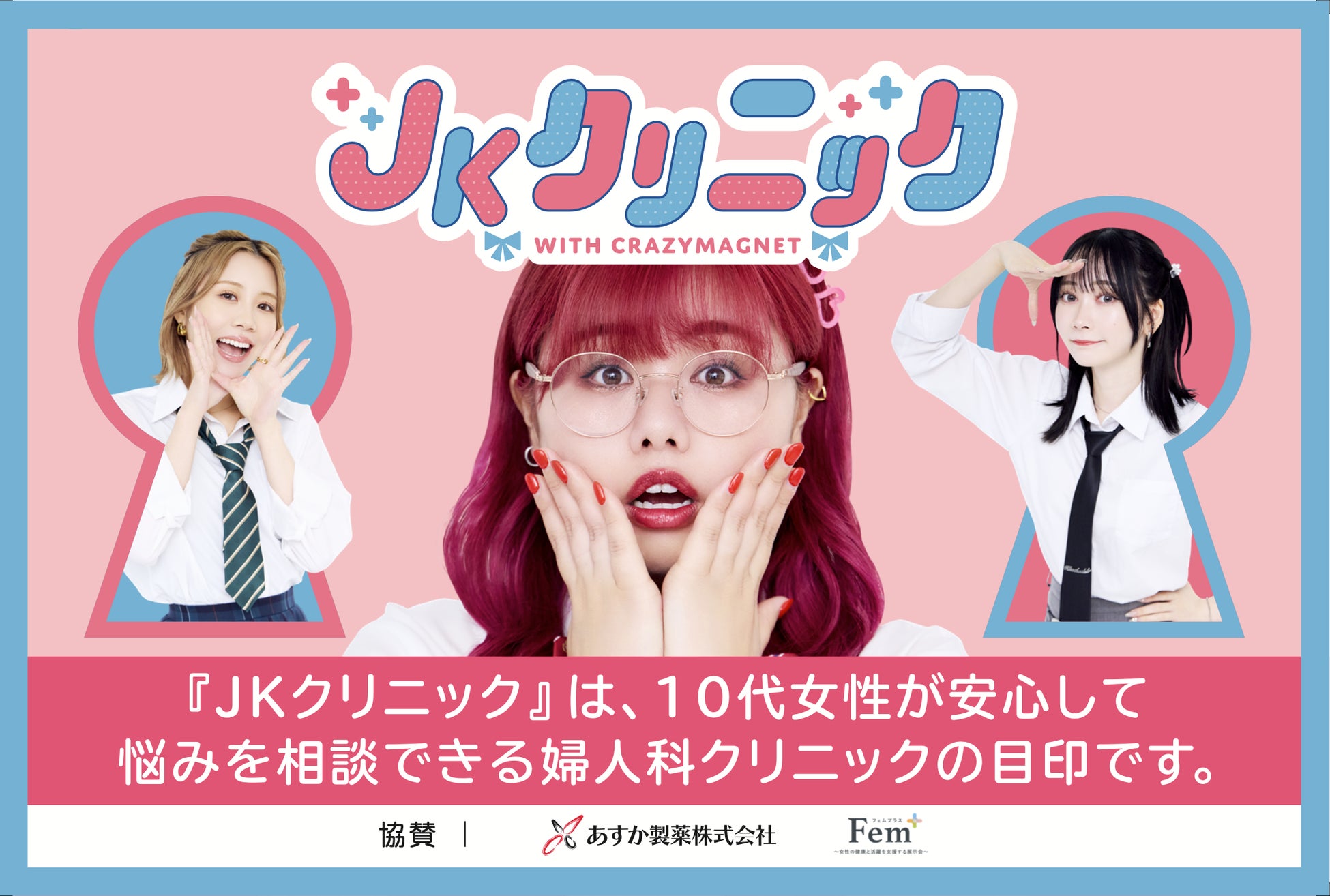 「女性からだ推進大使」として女性のヘルスケア啓発活動を行うYouTubeクリエイターユニット「くれいじーまぐねっと」が、2024年8月30日より推進している、思春期女性の適切な婦人科受診を支援するプロジェクト「JKクリニック」は、2025年2月、品川女子学院中学校・高校(東京都品川区)を皮切りに思春期女性向けの「受診支援カード」の学校での配布を開始したことをお知らせいたします。