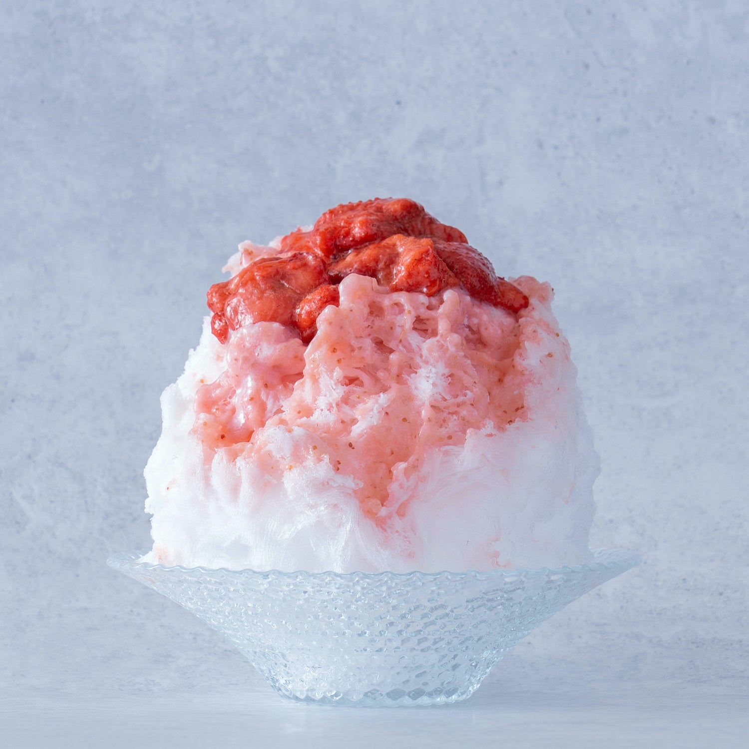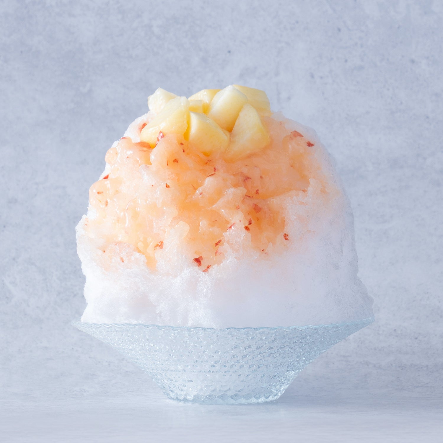 八ケ岳の天然氷蔵元八義を使用したかき氷は、まるで雪のようにふんわりとした食感と透明度の高い美しい見た目が特徴です。