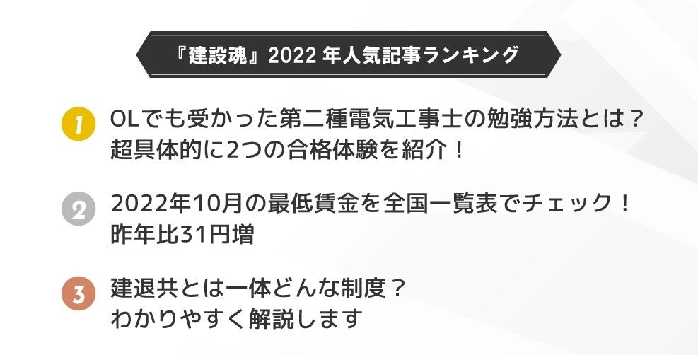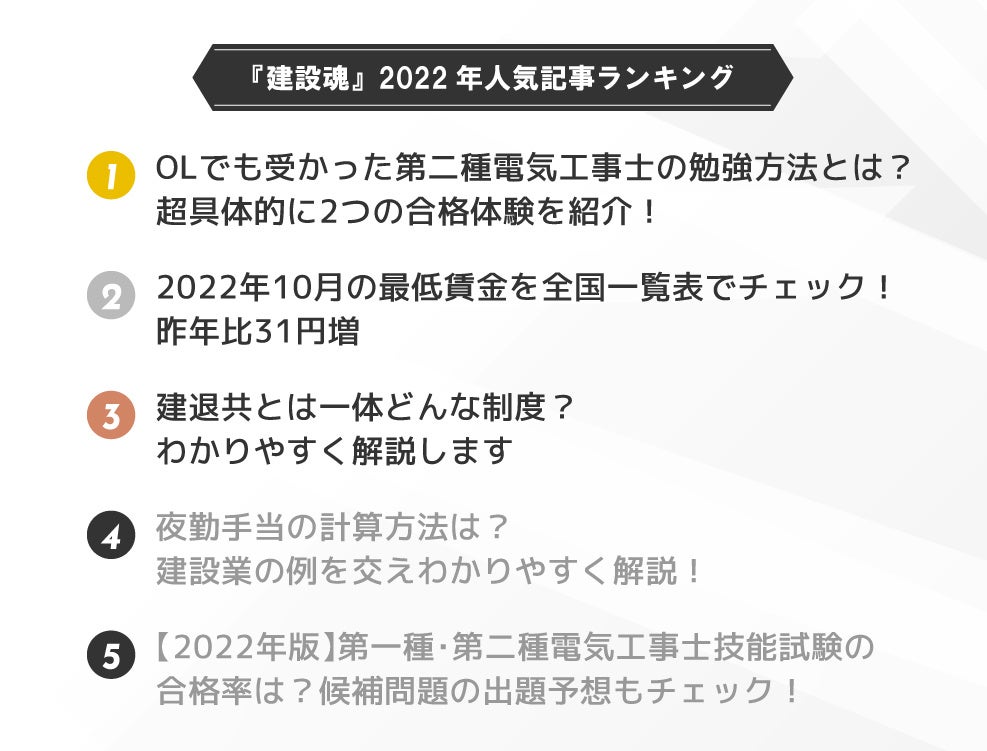 【『建設魂』2022年人気記事ランキングから読み解く 建設業のトレンド】若手層には資格試験コンテンツ ベテラン層・経営者層には労務系コンテンツが人気