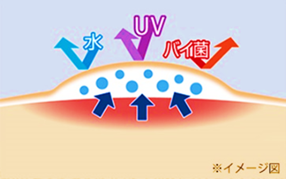 ハイドロ製品として業界初のUVカット機能付きです。UV(特にUVB)からキズを守ることで、色素沈着を抑え、キズ跡を残りにくくします。