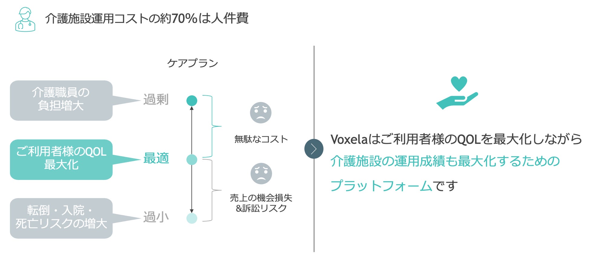 Voxelaは、日本をはじめとする先進国の介護の新しいあり方を再定義し、テクノロジーを通じて、各高齢者に合わせた最適なケアを提供しながら、施設としても持続可能な社会の実現を目指しています。