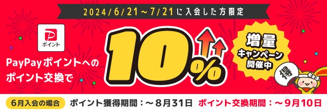 6月21日~7月21日までに登録した方が、広告利用で貯めたワラウポイントをPayPayポイントに交換すると、交換額の10%分のPayPayポイントが増量されます。