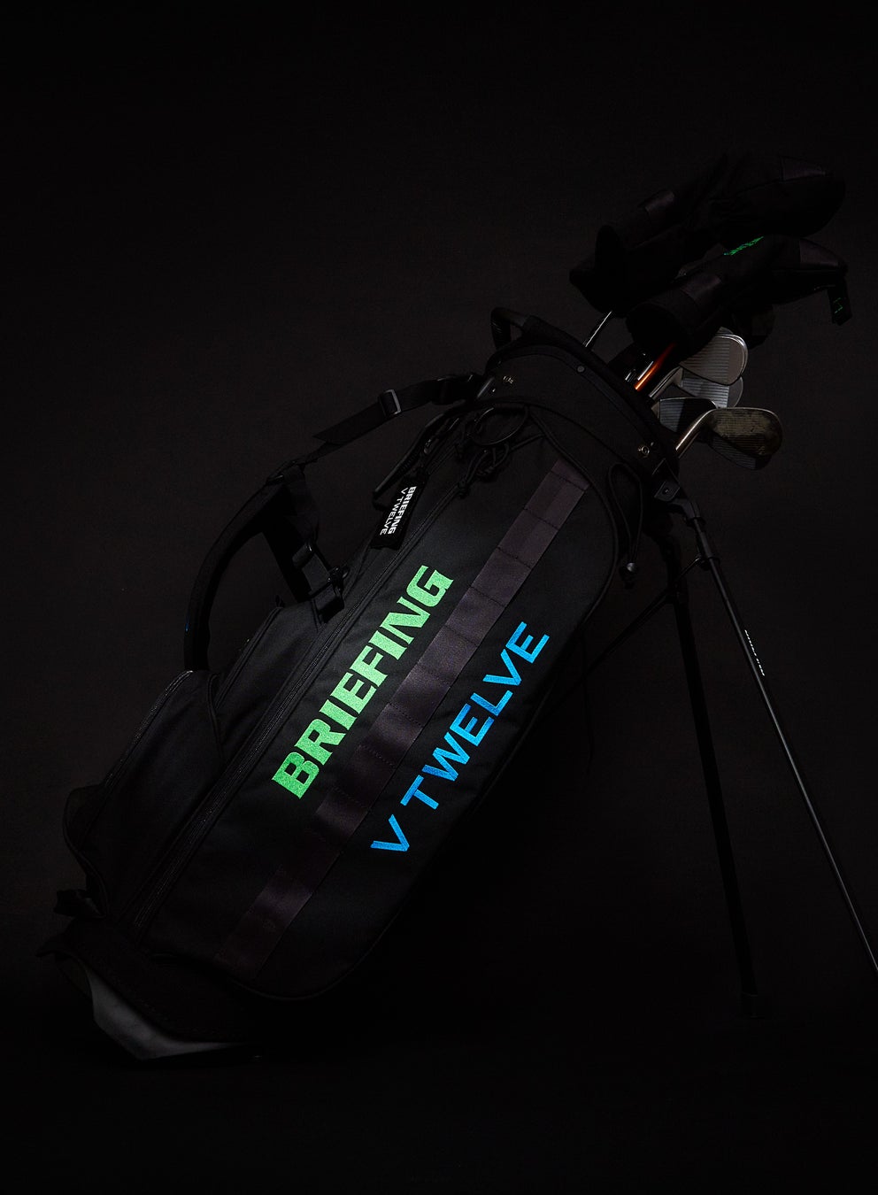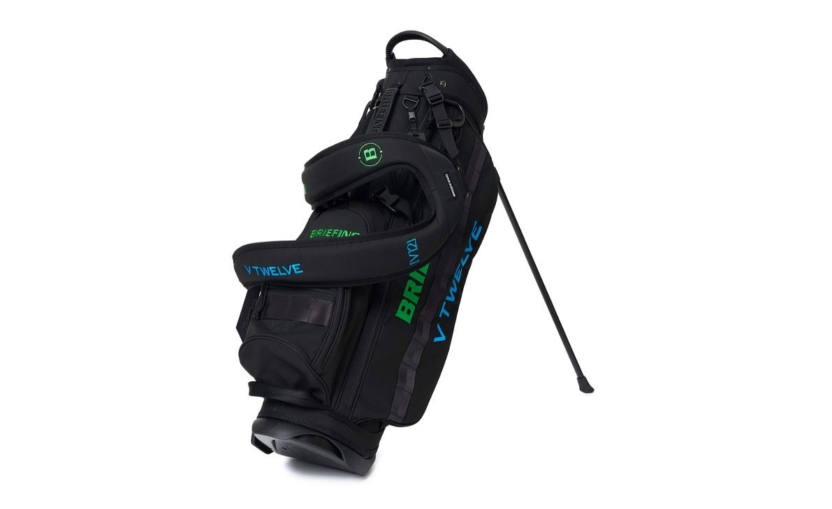 本コラボレーションでは、BRIEFINGのキャディバッグ「CR-4」 をベースに、V12のファッション性とBRIEFINGが得意とするミリタリーデザインが融合した特別仕様を製作。